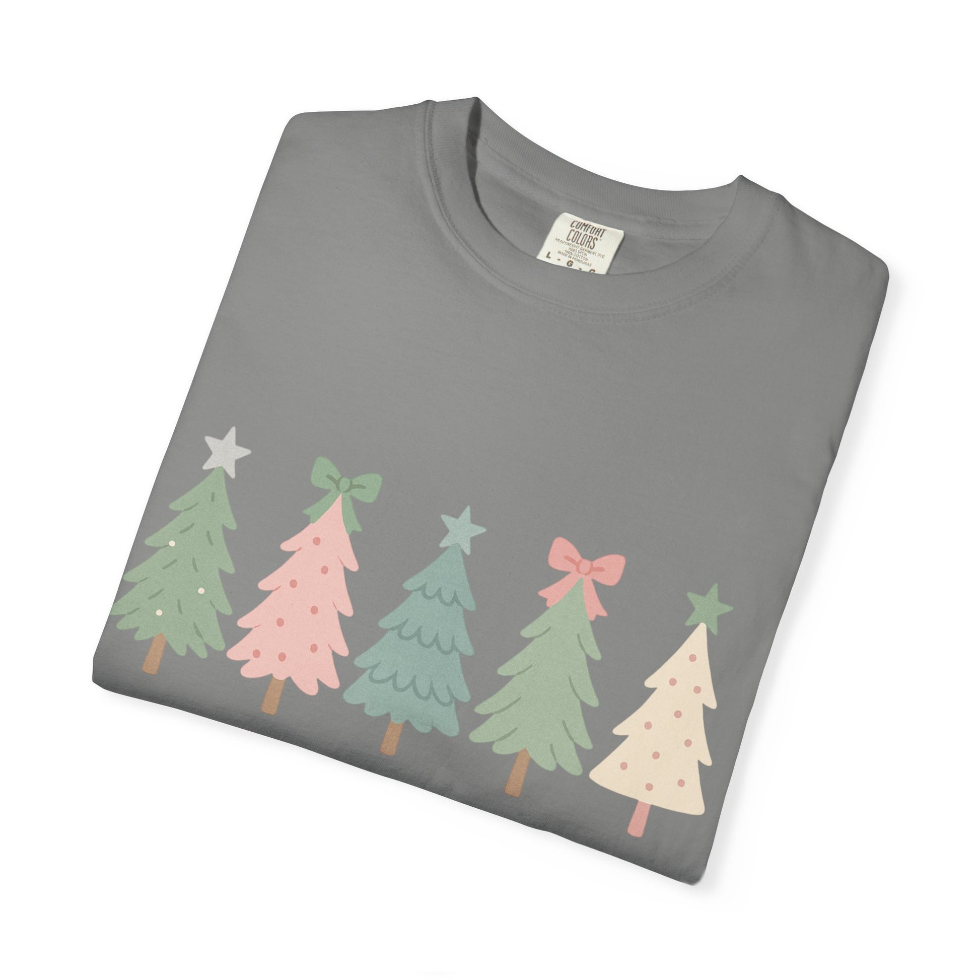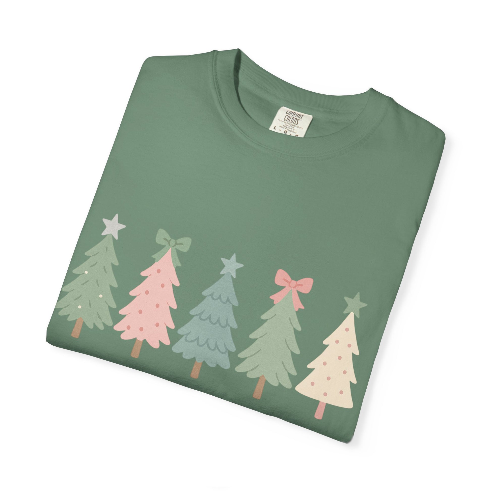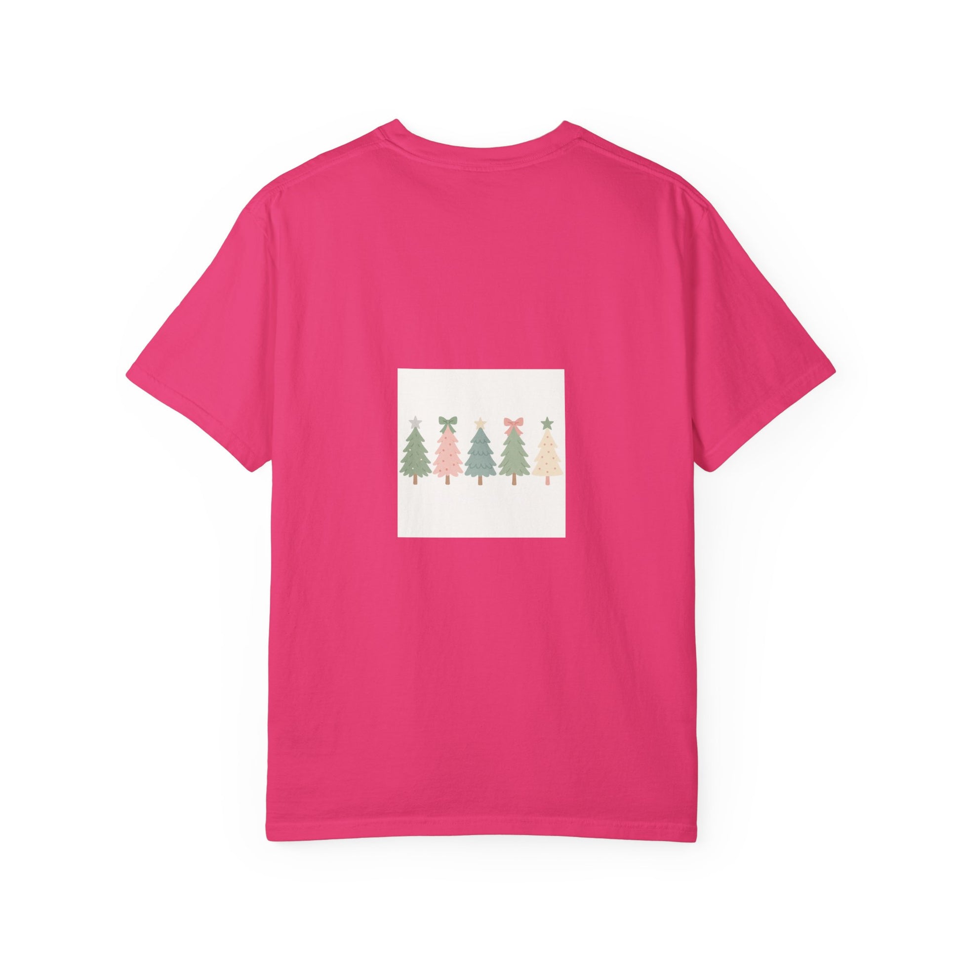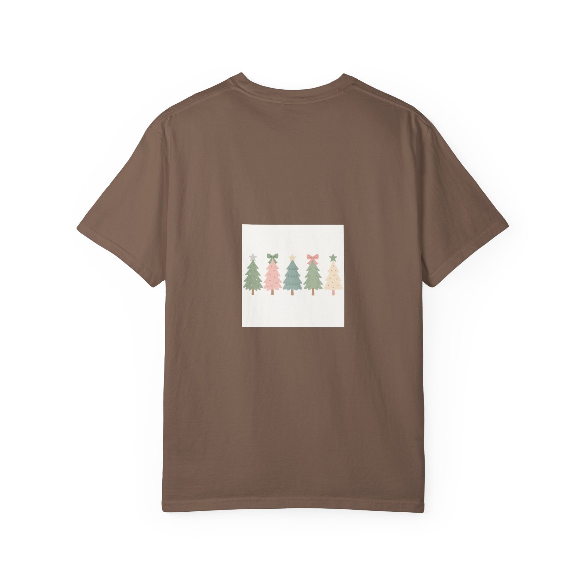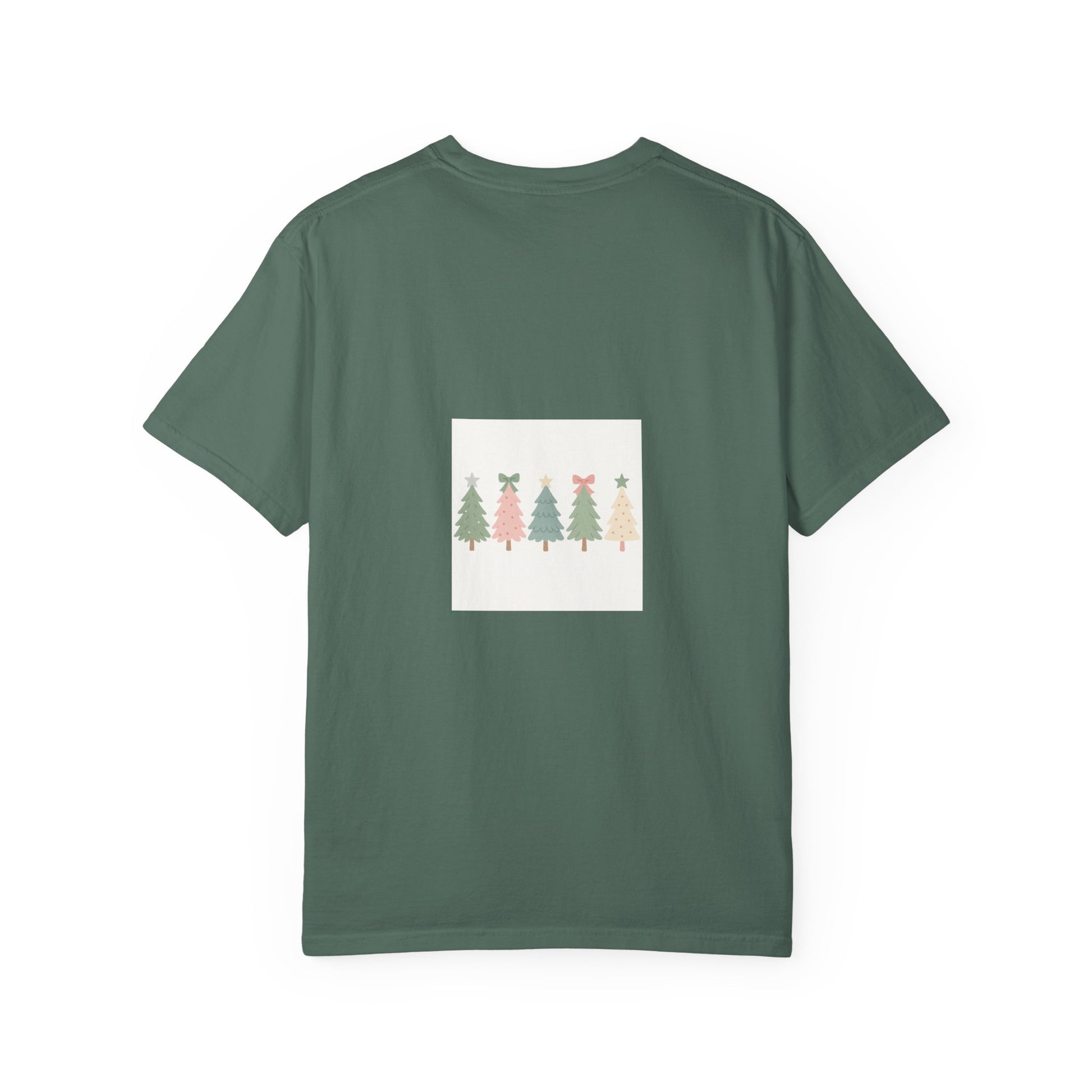 Embrace the joy of the holiday season with this charming unisex garment-dyed t-shirt. Featuring a playful design of festive trees adorned with bows and stars, this tee captures the spirit of celebration, making it perfect for Christmas gatherings, winter festivities, or casual outings with loved ones. With its soft color and relaxed fit, it offers an effortlessly stylish vibe that complements any laid-back wardrobe. Ideal for anyone who loves to spread cheer during the holidays, this t-shirt is a wonderful gift for friends, family, or even yourself. It's a delightful way to add some festive flair to your everyday look!