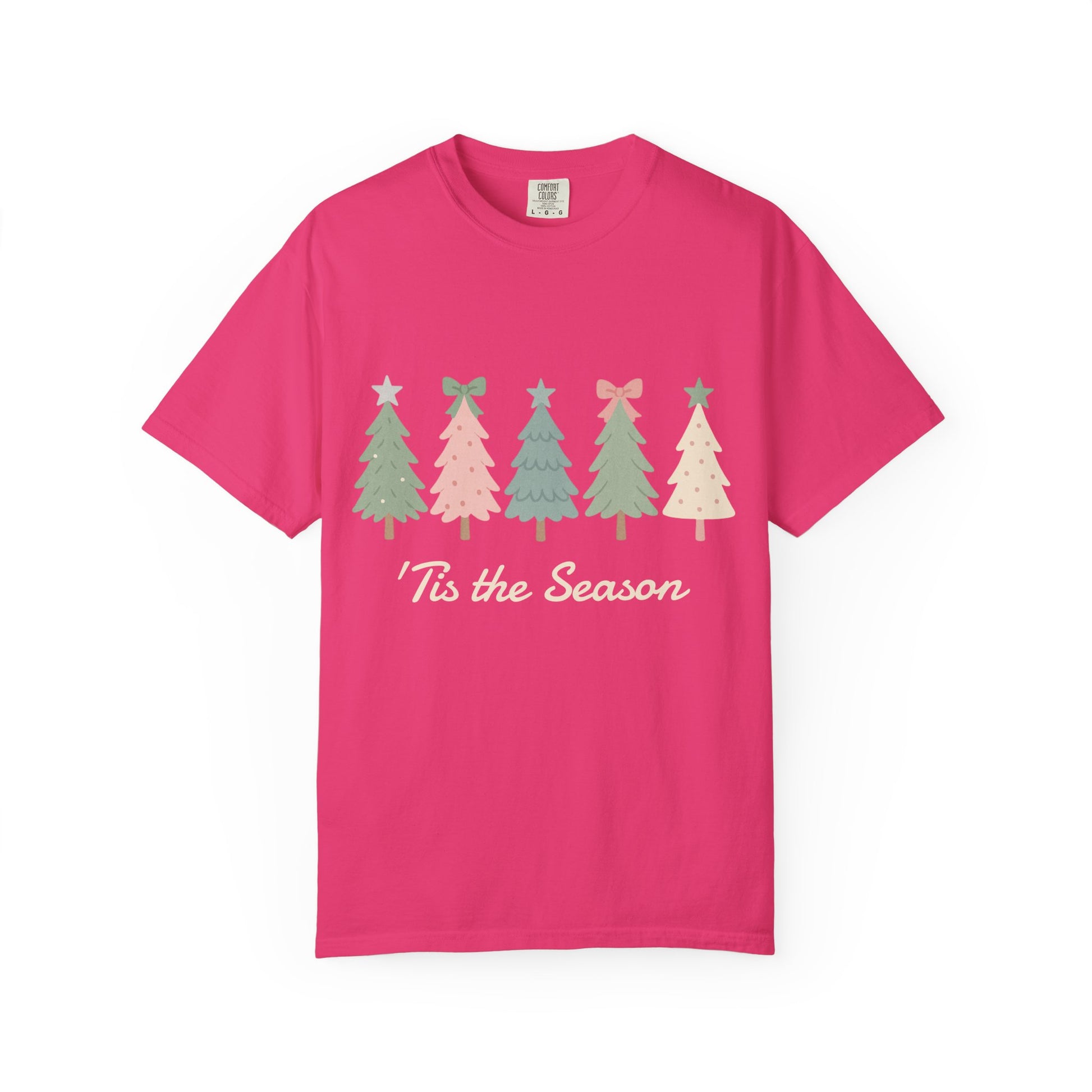 'Tis the Season Pink/Green Christmas Trees Comfort Colors 1717 T-Shirt